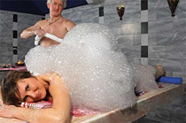 arabische Wort „Hamam“ heißt „wärmen, baden“ und steht für Entspannung, Wohlbefinden und Sauberkeit. Die zentralen Elemente bei dieser traditionellen Badezeremonie sind Wasser und Wärme. Zur Waschung wird reichhaltige Olivenölseife verwendet. Ein sanftes Ganzkörperpeeling reinigt die Haut porentief. Dabei regen Massagen mit dem Rohseiden-Handschuh die Durchblutung an. „Damit Wasser reinigt,