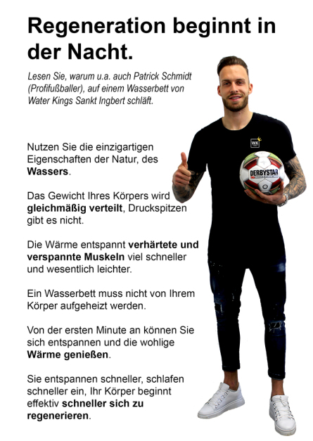 Schlafen Sie sich fit! Das empfehlen Ihnen heute viele Goldmedaillengewinner und Hochleistungssportler, die ihren Erfolg dem optimalen Schlaf und bestmöglicher Regeneration, dem Schlaf auf einem guten Wasserbett, zuschreiben. Wissenschaftler, Institute und Universitäten belegen das heute zweifelsfrei: Der tiefe und erholsame Schlaf fördert unsere Energie, Power und Gesundheit ganz erheblich!